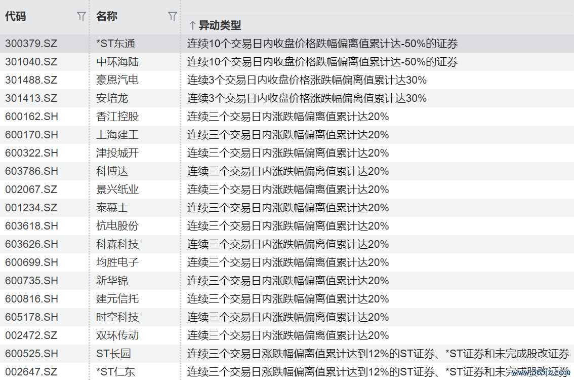 连续异动个股一览连续异动个股一览