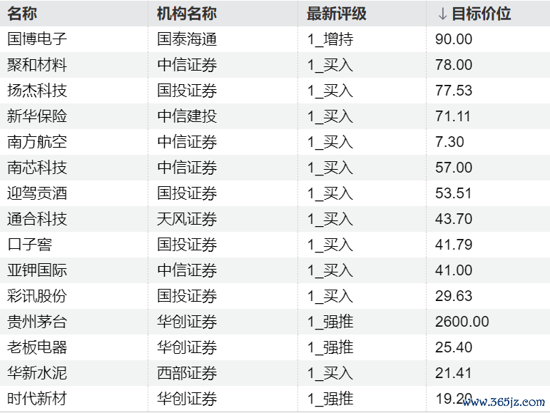 机构今日看好这些个股机构今日看好这些个股