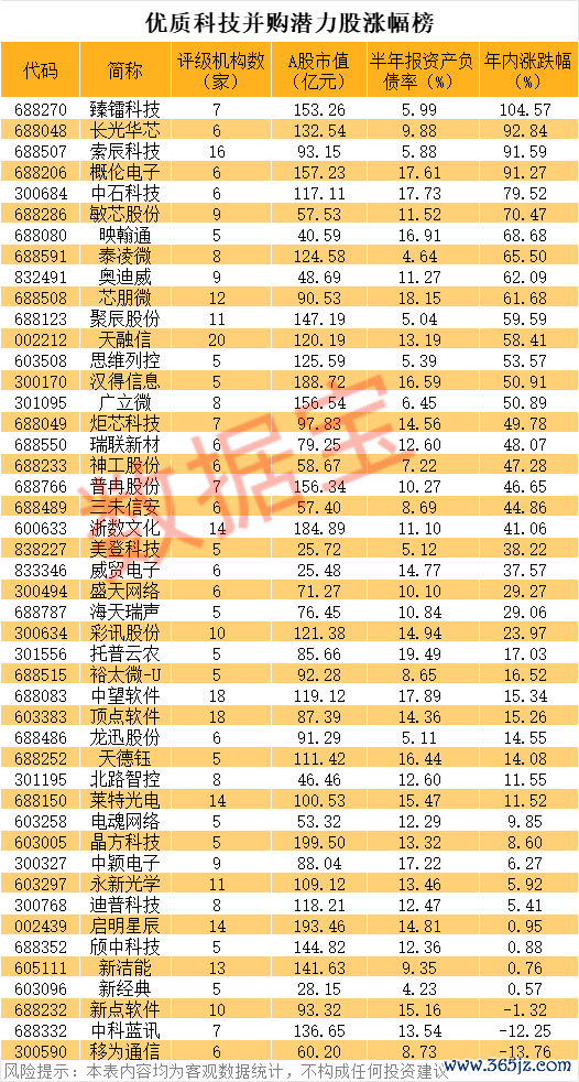 优质科技并购潜力股涨幅榜优质科技并购潜力股涨幅榜